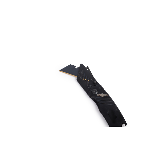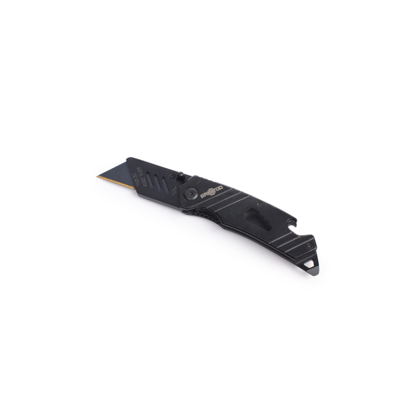 Предназначен для резки листовых или рулонных напольных покрытий, гипсокартона, пластика, кожи, резины. Объединяет в себе функциональность ножа, отвертки, гаечного ключа и открывалки. Особо прочный корпус ножа из нержавеющей стали с драйвером – отверткой. Вырез в корпусе ножа для использования изделия в качестве гаечного ключа с размерами S6, S8, S10, S12. Проверенный временем профиль корпуса ножа для удаления крышек и пробок закрытых емкостей. Клипса-фиксатор для удобства крепления на одежде. Защитное порошковое покрытие корпуса для эксплуатации в экстремальных условиях. Поставляется с одним сверхострым трапециевидным лезвием 19мм двухсторонней заточки, толщиной 0,5мм. Закаленное лезвие изготовлено из высококачественной стали SК5. Упаковка – пластиковый блистер.