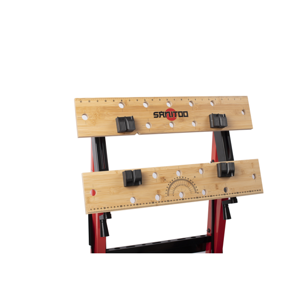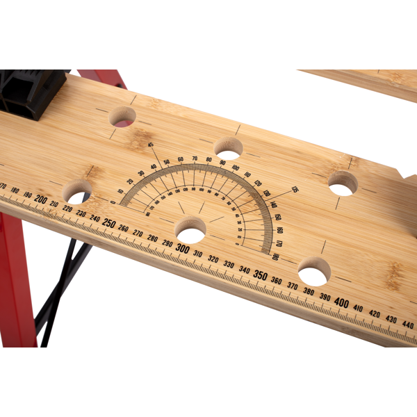 Верстак предназначен для зажима и крепления плоских деталей различной формы, а также заготовок цилиндрической формы для последующего распила, обработки поверхностей и торцов, а также сверления отверстий. Устойчивая станина с системой быстрого складывания для компактного хранения. Максимальная нагрузка – 100 кг. Рабочая поверхность панелей с высококонтрастной юстировочной шкалой, транспортиром и линейкой для удобства разметки заготовок. Удобная высота рабочего стола для комфортной работы с заготовками. Панели с упрочненной поверхностью произведены из бамбука. Станина с резиновыми противоскользящими опорами. Система пластиковых упоров специально разработанной формы позволяет надежно зажимать плоские детали шириной до 235 мм, плоские заготовки круглой формы диаметром до 380 мм, а также заготовки цилиндрической формы диаметром до 33,5 мм. 2 интегрированных отделения для хранения инструментов. Инструкция по сборке, эксплуатации и хранению изделия – внутри коробки.